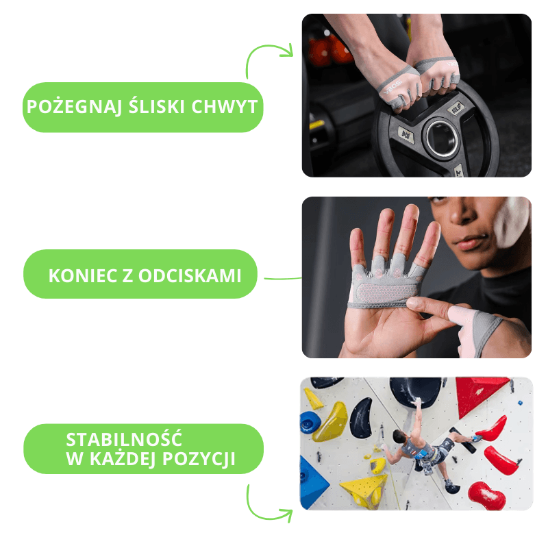 Są idealne do treningu siłowego, kalisteniki i fitnessu, gdzie liczy się pewny chwyt, ale nie chcesz przegrzewać dłoni. Świetnie sprawdzą się przy podciąganiu na drążku, ćwiczeniach z hantlami czy na maszynach w siłowni. To rozwiązanie dla osób, które nie lubią uczucia "spoconych rąk" w pełnych rękawiczkach.